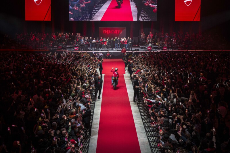 Ambiance d’occasions spéciales et salle comble de fans dans l’Unipol Arena pour “Campioni in Festa”, l’événement avec lequel Ducati a célébré sa domination dans le monde des courses, partageant son temps entre MotoGP, WorldSBK et WorldSSP. Les cinq « Celebrating Champions » ont reçu une vague d’affection de la part des passionnés Ducatisti venus du monde entier pour ne pas manquer ce moment historique. La ville métropolitaine de Bologne et la région Émilie-Romagne ont célébré avec la Motor Valley les succès d’une entreprise en collaboration avec Ducati. Une histoire bien ancrée à Borgo Panigale, qui se targue en même temps d’être un ambassadeur du « Made in Italy » dans le monde entier.