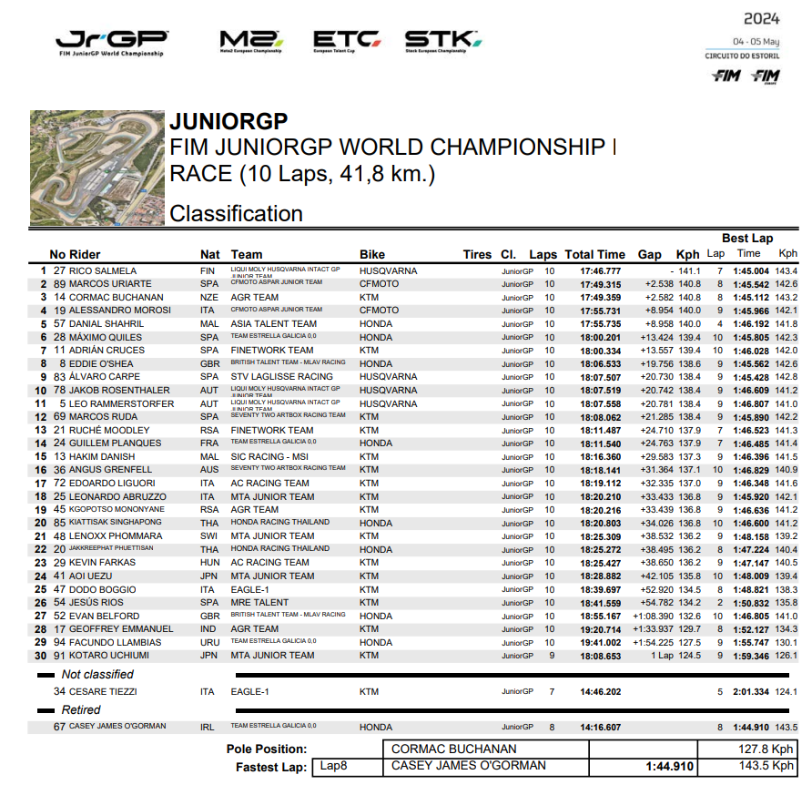 Home»In Pista»JuniorGP Estoril : Rico Salmela et le pari habile qui vaut le triomphe, Morosi 4ème