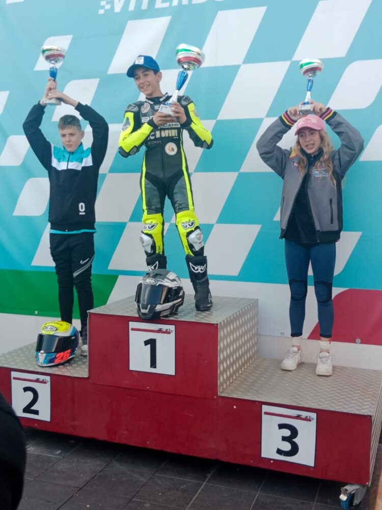Lors de la double séance de qualification, Miranda Festoso a eu du mal à trouver le bon feeling avec la moto, la forçant à partir de la neuvième position sur la grille. Grâce aux mains expertes de Max Levantini et de son fils Davide, qui ont ajusté les réglages de la moto, dans la Course 1, il a commencé à réduire ses temps, effleurant les courbes de Viterbe de manière fluide et décisive. Plusieurs dépassements ont été effectués de manière spectaculaire, franchissant la ligne d’arrivée à la cinquième place. ‘Miri’ commence à gagner en confiance avec la moto et la piste, dans la Course-2 elle termine quatrième, des résultats qui lui permettent de terminer à la troisième place du général dans sa catégorie.
