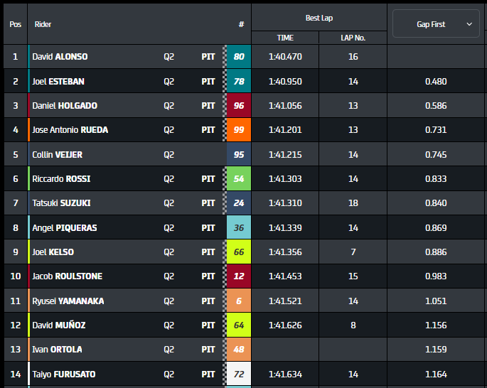 L’équipe Aspar a réalisé une double satisfaction lors de l’Essai 1 au Mans. David Alonso est toujours devant, et encore une fois à un rythme record, mais immédiatement derrière se trouve le débutant Joel Esteban. Un doublé pour l’équipe de Martinez devant le leader Moto3 Daniel Holgado. Et les Italiens ? Frissons pour un highside de Filippo Farioli, heureusement sans conséquences, mais provisoirement seul Riccardo Rossi serait en Q2… Voici comment s’est déroulée la dernière séance de vendredi sur le Circuit Bugatti.