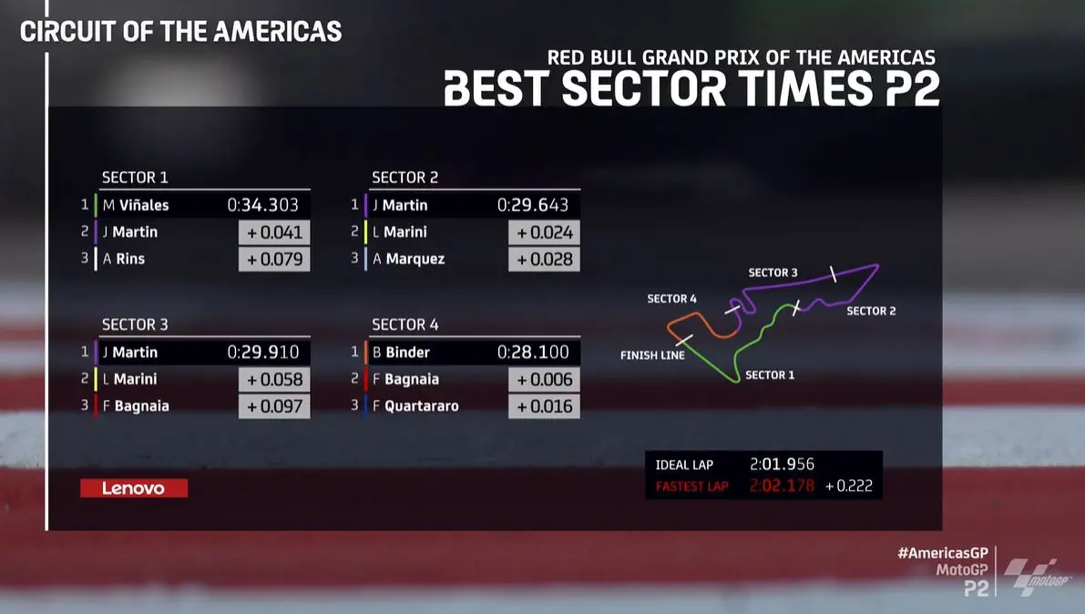 Es beginnt wieder mit dem Blitz von Luca Marini im Training 1 des texanischen Morgens. Die Strecke ist trocken, die Regentropfen der vorherigen Sessions haben aufgehört. Daher waren sofort einige Veränderungen zu sehen, allen voran ein wilder Miguel Oliveira, der seine Aprilia mit Vollgas startete. Er scheint in der Lage zu sein, die Führung in der vorläufigen MotoGP-Wertung zu übernehmen, verliert aber in den letzten Sektoren etwas und ist “nur” Dritter. Ein super Start, der kurz darauf mit einem Crash in Kurve 2 endet, ohne Folgen. Kurz darauf riskierten sowohl Fabio Quartararo als auch Alex Marquez viel, aber sie sind nur Ruckler und beide fahren ohne Probleme weiter. In der Torschützenliste ist der Sprung von Jorge Martin an die Spitze keine gute Wendung für Oliveira, der in Kurve 12 einen zweiten Unfall meldet. Augusto Fernandez stürzt ebenfalls, aber achten Sie auf Joan Mir, der den Turbo einsetzt und die Führung übernimmt! Er ist nicht der einzige, tatsächlich suchen viele nach einer brauchbaren Runde und das Ranking wird auf den Kopf gestellt. Letzte Unfälle für Stefan Bradl, Johann Zarco und Joan Mir (weil er das Motorrad des Franzosen bereits am Boden getroffen hat), Jorge Martin ist am Ende an der Spitze, während Maverick Vinales Hilfe braucht, weil ihm das Benzin ausgeht.