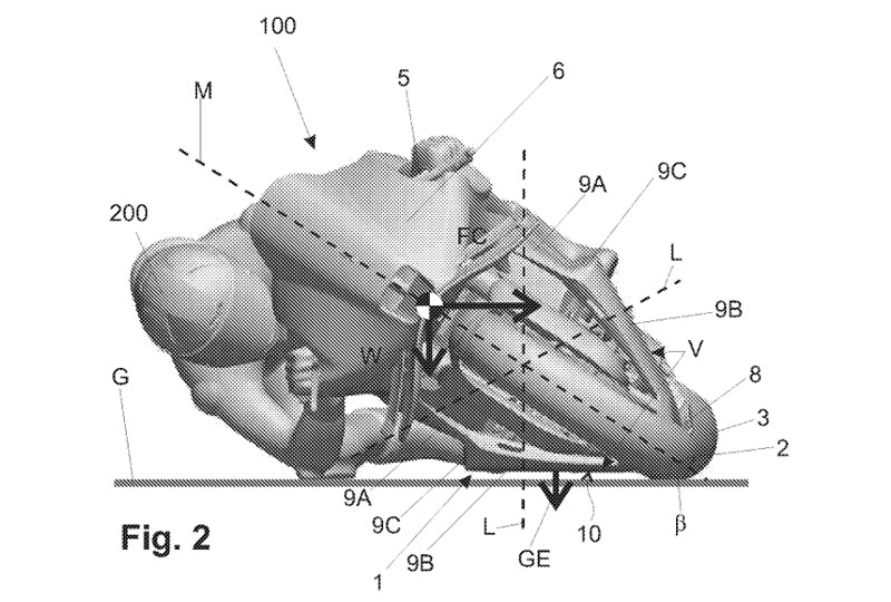 Brevet n°. WO2023238025A1 a été déposé en juin 2023 et accepté en décembre de la même année. Il s’agit de la forme des flancs de la RS-GP apparue en 2022, dont on soupçonnait tous qu’elle générerait un effet de sol une fois la moto inclinée. Tout cela est clairement confirmé dans les termes très précis des brevets dont nous avons connaissance.