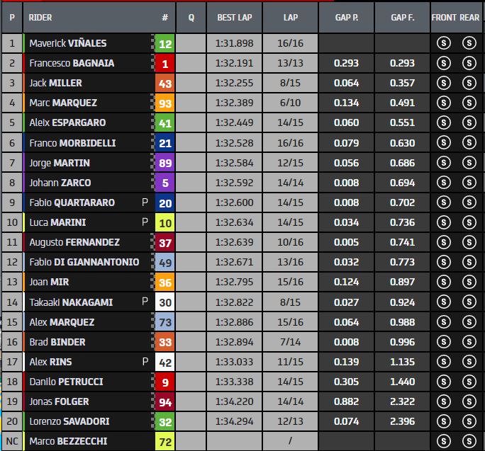 Putaran MotoGP terakhir untuk mempersiapkan kualifikasi, yang akan segera dimulai. Maverick Vinales memimpin klasemen pada sesi latihan bebas tersebut, sementara beberapa masalah dialami Ducati dan KTM. Sesi tanpa pengaruh dari perspektif kualifikasi, tetapi sama pentingnya dengan FP4 sebelumnya. Mari kita ingat bahwa kita akan menemukan kedua Yamaha di Q1, konfirmasi lebih lanjut dari momen sulit bagi pabrikan Iwata di MotoGP. Sementara itu, mari kita lihat catatan waktu di babak ini.