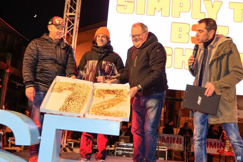 La foule s’est fait sentir sur une Piazza Pascoli bondée pour le pilote VR46 Ducati de 25 ans. Mauro Sanchini, voix de Sky Sport MotoGP, a animé la soirée organisée par le Fan Club Bezzecchi. Il y avait aussi un défi Rubik’s Cube avec un champion, Giovanni Contardi de Pesaro, qui a finalement triomphé. Bezzecchi a cependant reçu un tableau avec son visage composé des briques du jeu.