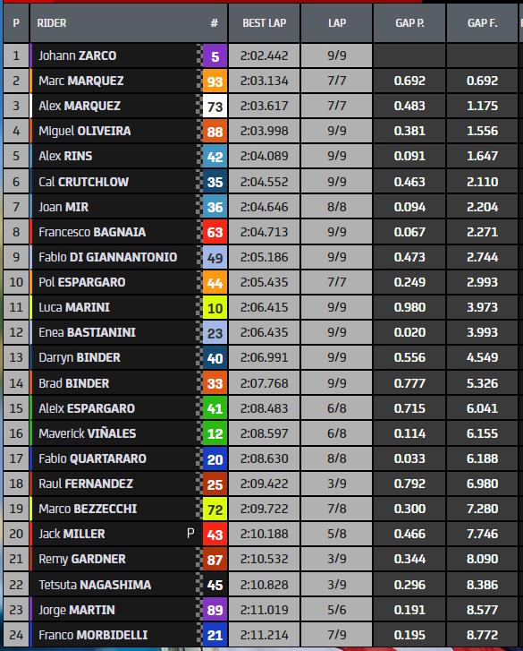 Juga dalam kategori ini ada kesempatan pertama untuk menutup akun di seluruh dunia. Bagnaia memimpin klasifikasi, Quartararo mengejar dan hari ini dia harus mengertakkan gigi mengingat cedera yang diderita kemarin sebelum kualifikasi. Namun, setelah beberapa menit, dia memegang komando, bertekad untuk mengirim sinyal pertama kepada para pesaingnya. Dan Aleix Espargaro? Dia memiliki 300 balapan dan 27 poin untuk dipulihkan pada pemimpin, itu juga bukan tugas yang mudah baginya. Hujan rata-rata dua kali lipat untuk semua orang di sesi terakhir ini sebelum balapan yang menentukan. Namun, itu juga akan tergantung pada cuaca, faktor besar yang tidak diketahui dari GP ini… Menit-menit terakhir ditandai dengan pergantian ban slick, serta uji bendera ke bendera.