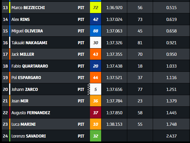 Une curiosité est représentée par les deux chars utilisés par l’équipe Pramac : le premier est celui utilisé par Jorge Martin, le second est celui de Franco Morbidelli. Aujourd’hui à Jerez, il y a aussi quelques chutes sans conséquences : Bastianini a glissé le matin, Bezzecchi juste avant la pause déjeuner, le dernier est Martin, un deuxième problème après le problème technique subi le matin.