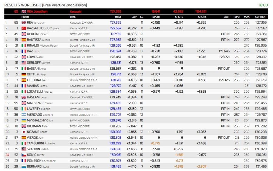 15:04 リナルディは4回目のトライアルですぐにトップの座を確認しましたが、バウティスタはトップから759千分の1で4位です。 午前中のタイムトライアルをまだ改善していない6番目のトプラク。