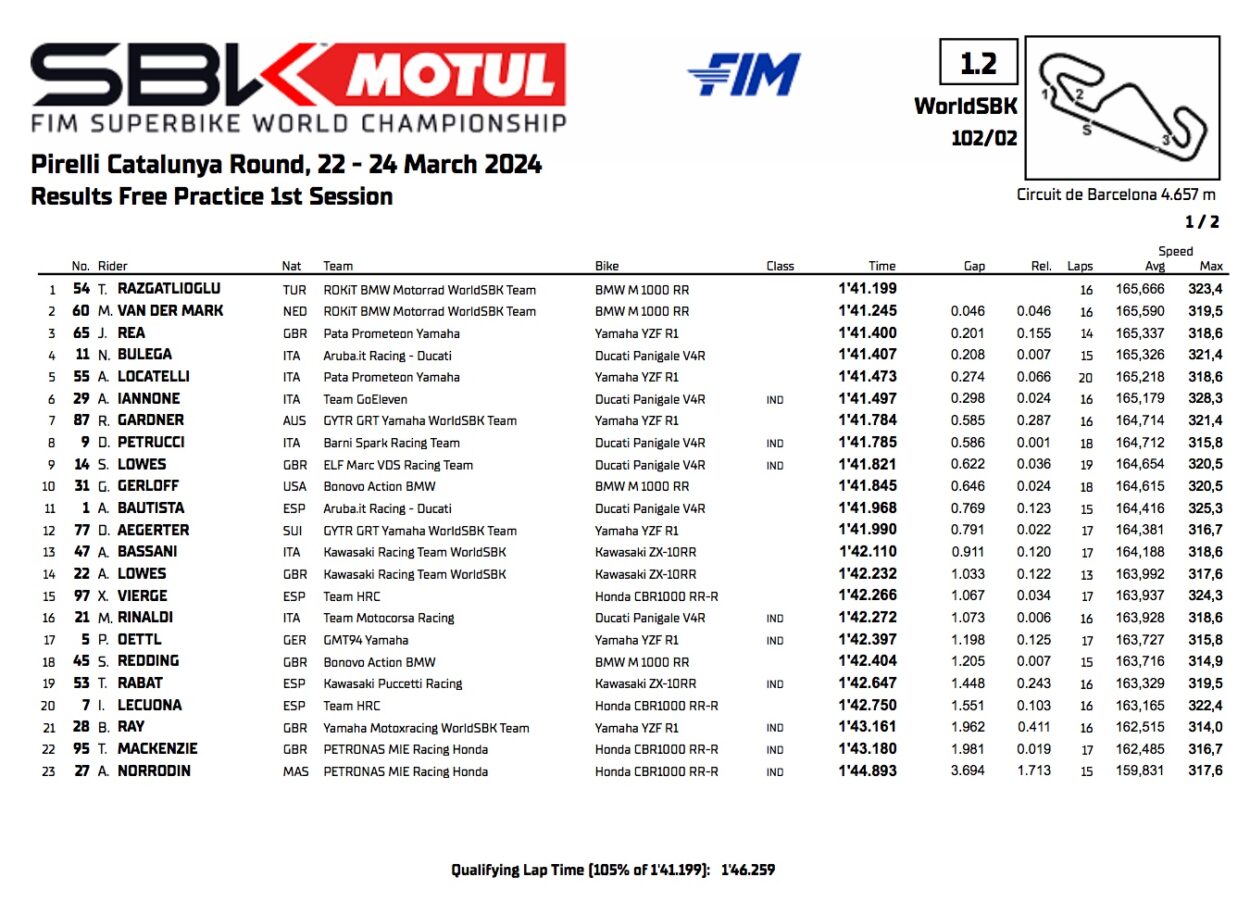 Home»Toprak Razgatlioglu»Superbike Catalunya Test 1 : Toprak démarre en trombe, où est Bautista ?