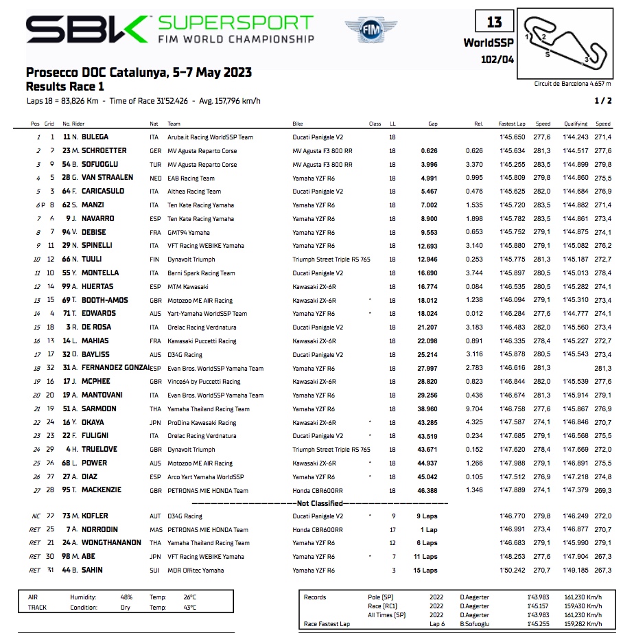 Schroetter, Sofouglu en Manzi strijden dus om het podium achter de Ducati Aruba rijder. In de finale heeft Schroetter nog iets meer om Bulega te bereiken. Schitterende strijd om de derde plaats tussen Manzi en Sofouglu met eindeloze stroomlijnkappen. De Ten Kate-coureur passeert met 6 duizendsten van een seconde op de Turkse coureur maar degradeert naar de zesde plaats achter Van Straalen en Caricasulo door een eerder afgebroken baan.