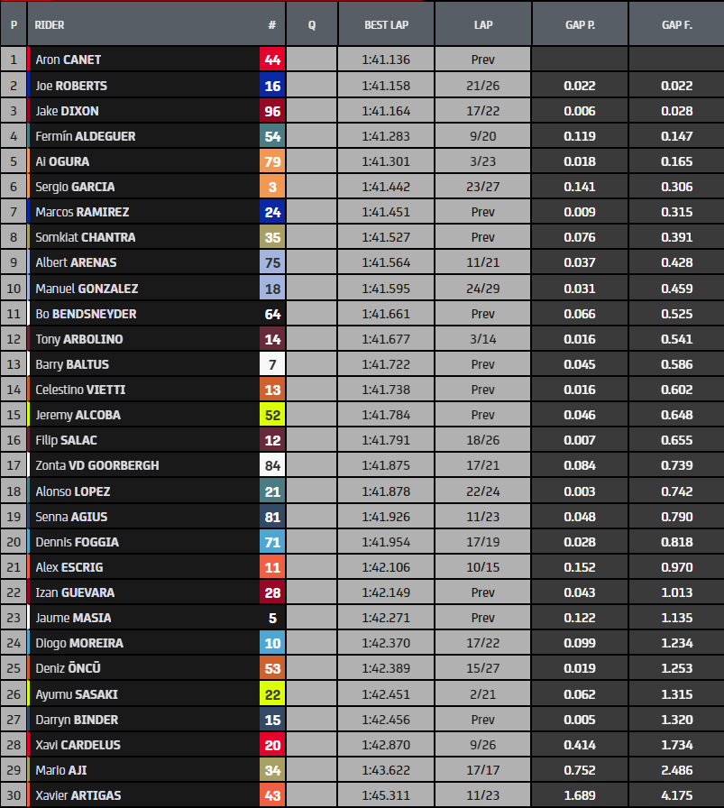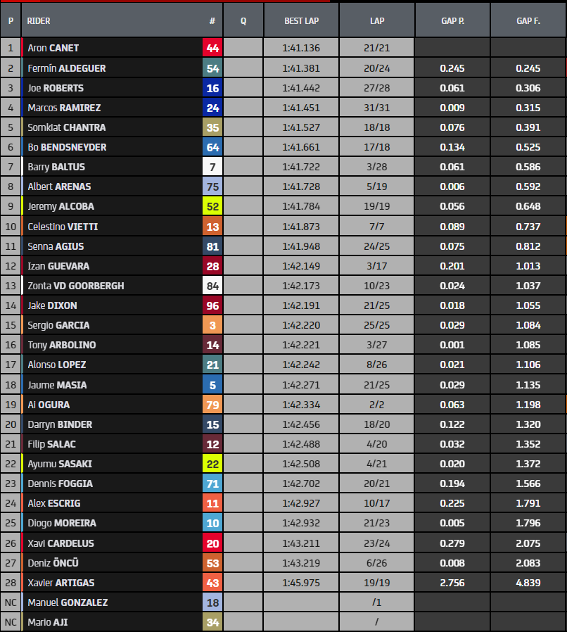 Il y a un soupçon d’Italie en tête du classement lors de la première journée d’essais Moto2 à Jerez. Il s’agit de la marque lombardo-vénitienne Fantic, portée au sommet par son nouveau cavalier Aron Canet. En effet, l’Espagnol a terminé aux commandes du test combiné de ce mercredi grâce au temps réalisé lors de la deuxième séance d’aujourd’hui. Il y a aussi quelques accidents au reportage, comme ceux de Celestino Vietti et Tony Arbolino, ou encore ceux du nouveau duo Gresini et Darryn Binder, le tout sans conséquence. Après les essais privés peu réussis de Portimao, la première journée officielle du Moto2 s’est aujourd’hui déroulée sans encombre. Cela continue jusqu’à vendredi, ce sont des tests importants pour se faire une première idée des noms à surveiller pour la nouvelle saison mondiale.