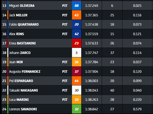 Chez Ducati, l’objectif principal est de résoudre le problème de vibrations sur la Desmosedici. Essais châssis ensuite pour les pilotes en rouge, principalement avec le duo d’usine Bagnaia-Bastianini. Le constat fait état d’un accident au virage 7 pour le conducteur n°23, sans conséquence. “Le problème de vibrations a été partiellement résolu ce week-end à Jerez, mais il manque encore quelque chose, nous enquêtons” a admis Davide Tardozzi à Sky Sport MotoGP. Il a ensuite également parlé du frein au pouce arrière de Marc Marquez. “Il ne l’a jamais utilisé, nous pensons que c’est important pour Ducati, surtout en accélération, et aujourd’hui il l’essaye” a-t-il déclaré.