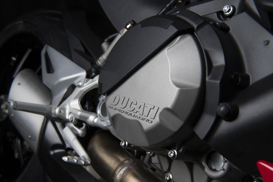 Côté couple, le V2 affiche une valeur maximale de 101,4 Nm à 9 000 tr/min. L’effort par rapport à la Panigale V2 est de la rendre plus élastique et ductile, afin d’être utilisable et agréable sur la route, sans perdre en efficacité sur piste, où il promet d’être toujours facile à piloter en toute situation. Comme mentionné et selon la tradition du constructeur Borgo Panigale, le V entre les cylindres est de 90°, mais pour atteindre l’empattement le plus compact possible, les cylindres sont tournés vers l’arrière pour obtenir un angle de 21° entre le cylindre avant et l’horizontale avion. La boîte de vitesses est à 6 vitesses avec le système Ducati Quick Shift à la fois vers le haut et vers le bas et, par rapport à la Panigale V2, le rapport final a été raccourci, afin d’assurer une plus grande disponibilité du moteur lors de la réouverture du gaz.